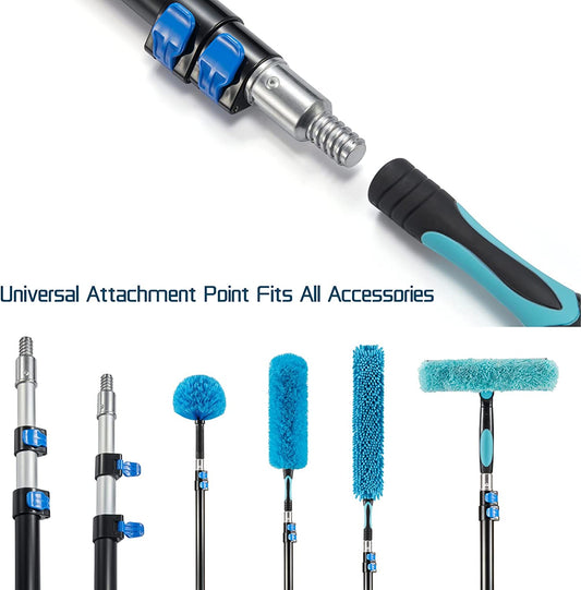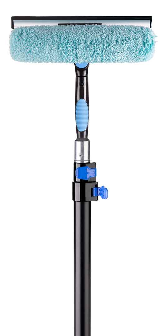 Our extendable pole can reach tall areas without any hassle. Change the head of the extension pole to any you want with our universal screw on cleaning heads.
